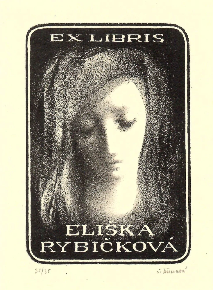 Název: Zasněná dívčí hlava / exlibris