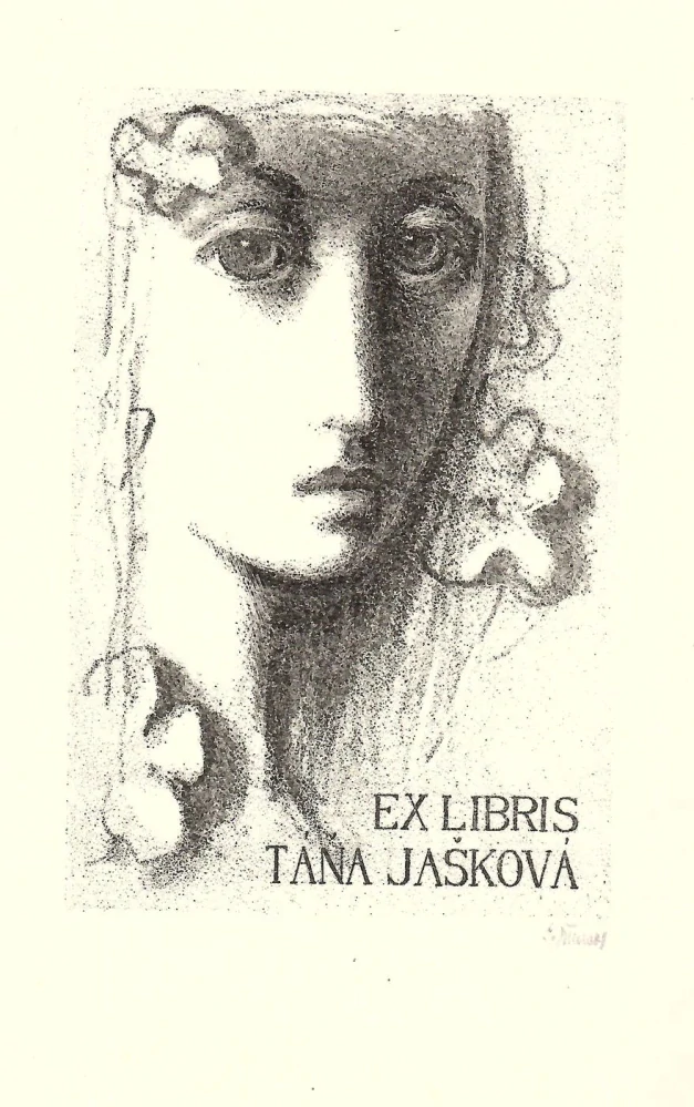 Jiřincová Ludmila – Zasněná s květy, litografie,1945