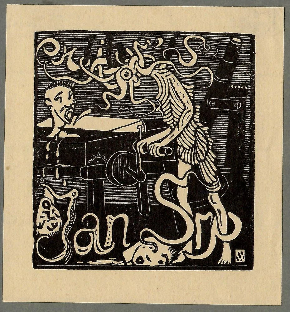 Josef Váchal – Chobotnice u telefonu – exlibris – dřevoryt na prodej