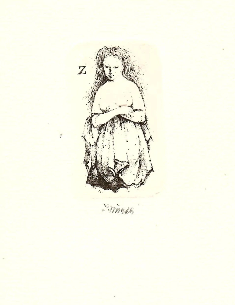 Jemné exlibris Ludmily Jiřincové s motivem ženského aktu, typická ukázka autorčiny komorní grafiky s citlivou linií a poetickým výrazem. Vhodné pro sběratele exlibris i milovníky české grafiky 20. století.